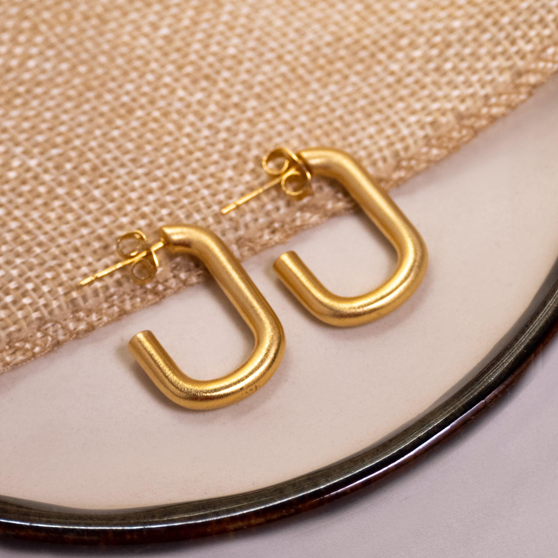 Minimal yet striking, the Luna Curve Hoops are casted in high-quality brass and finished with a radiant 18k gold plating, its geometric C-shaped silhouette brings a refined edge to your everyday style. The matte finish adds a modern edge, while its silhouette adds a touch of understated luxury to any look.